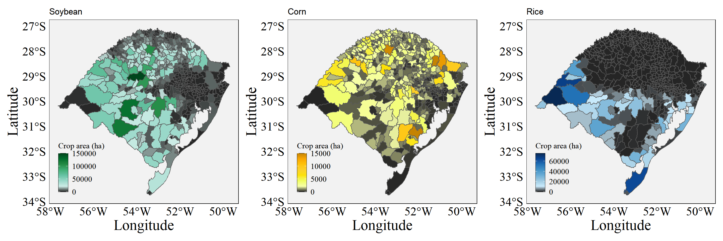 R - Cultivated crop maps in Rio Grande do Sul, Brazil